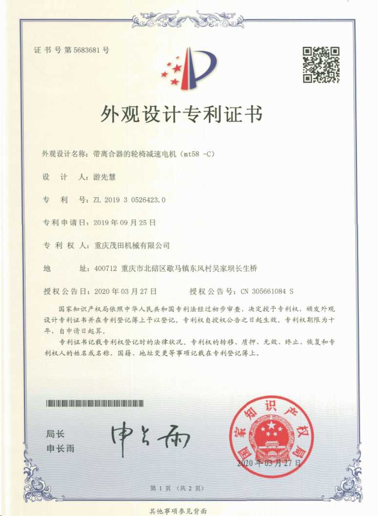 重慶茂田機(jī)械有限公司是國家級小巨人企業(yè)、國家高新技術(shù)企業(yè)、重慶市專精特新企業(yè)、重慶市知識產(chǎn)權(quán)優(yōu)勢企業(yè),致力于現(xiàn)代化山地農(nóng)業(yè)機(jī)械、各類非標(biāo)減速電機(jī)及其控制系統(tǒng)的研發(fā)、生產(chǎn)、銷售。擁有重慶市市級研發(fā)平臺1個 目前研發(fā)、生產(chǎn)、銷售產(chǎn)品廣泛應(yīng)用于農(nóng)業(yè)機(jī)械、醫(yī)療康復(fù)設(shè)備、交通代步工具、智能搬運(yùn)設(shè)備、以及機(jī)器人動力系統(tǒng)等領(lǐng)域。我們的產(chǎn)品具有完整的自主知識產(chǎn)權(quán),擁有多項專利技術(shù)及“重慶